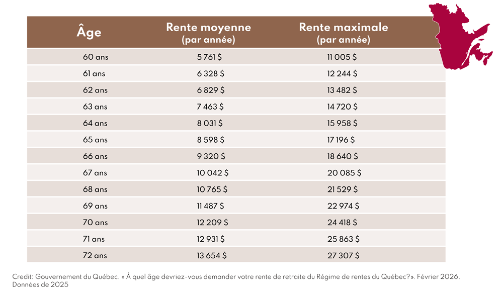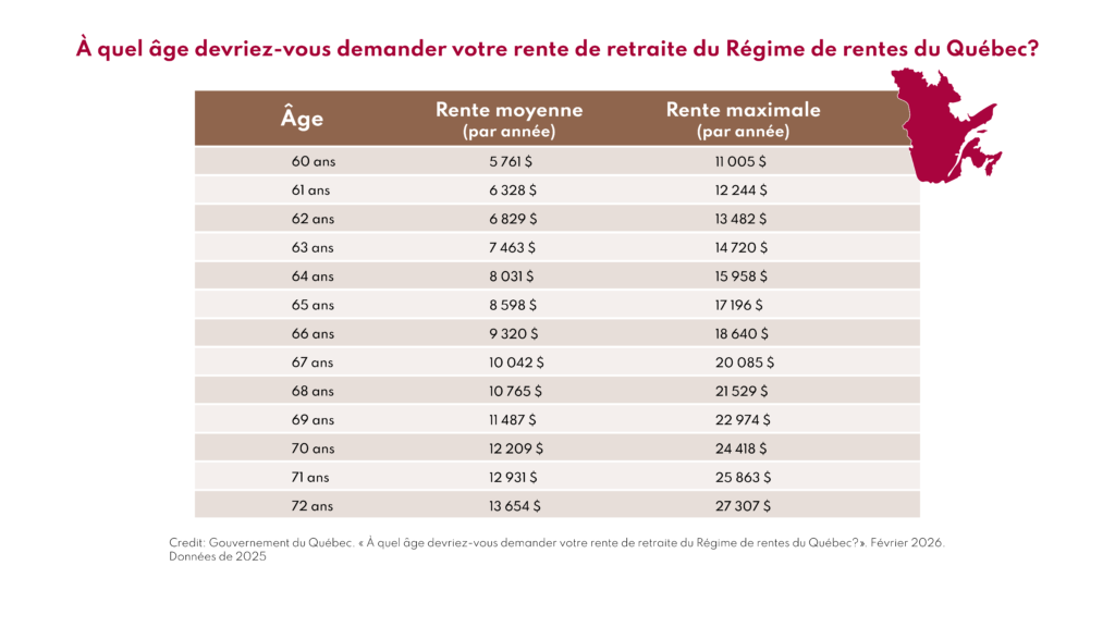 Le choix de l’âge de départ change le montant reçu à vie. Cela est vrai pour le RRQ et pour la PSV.
